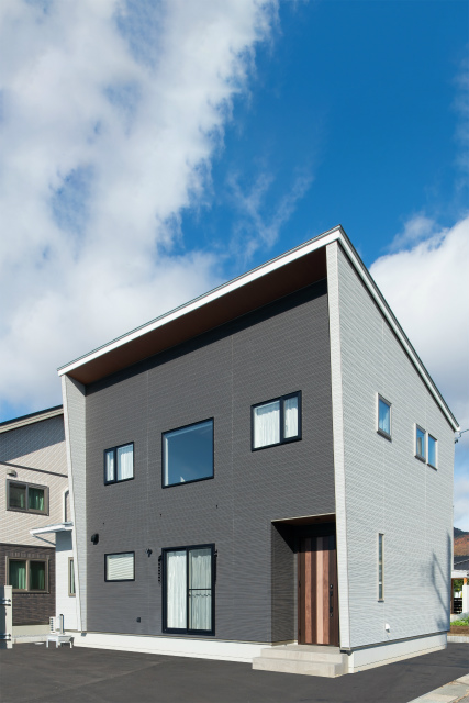 子育て世代のご夫婦がこだわった個性的なファサードの「シンプルモダンな住まい」の見学会場は、