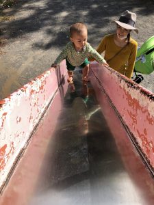 せっかく歩き出したので、少しトレーニングをさせたくなって先日公園で滑り台を上らせてみようと試みました。