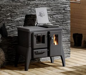 こんな形で窓がいくつもあるタイプの物(薪ストーブの中で火の力を利用して料理をする為に窓を分けたデザインにしたそうです。)