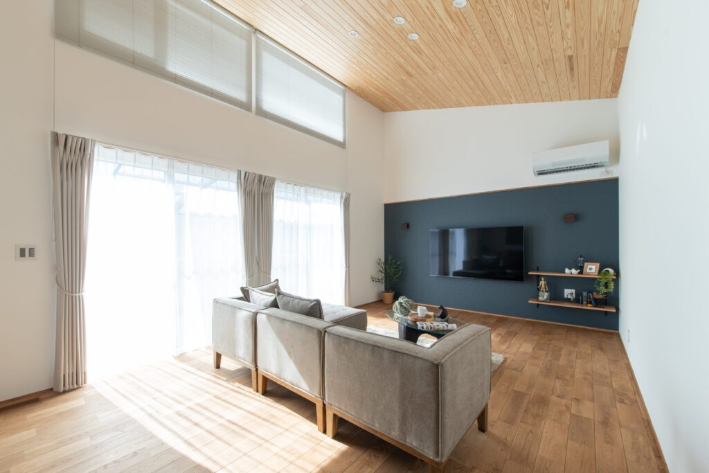勾配天井が織りなす開放感溢れる平屋
