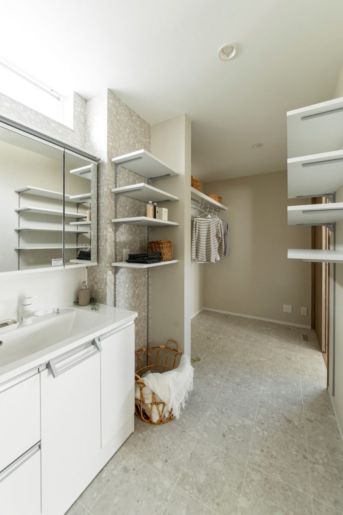 こちらもご要望を多くいただく、キッチンに隣接した収納・水回りの配置。