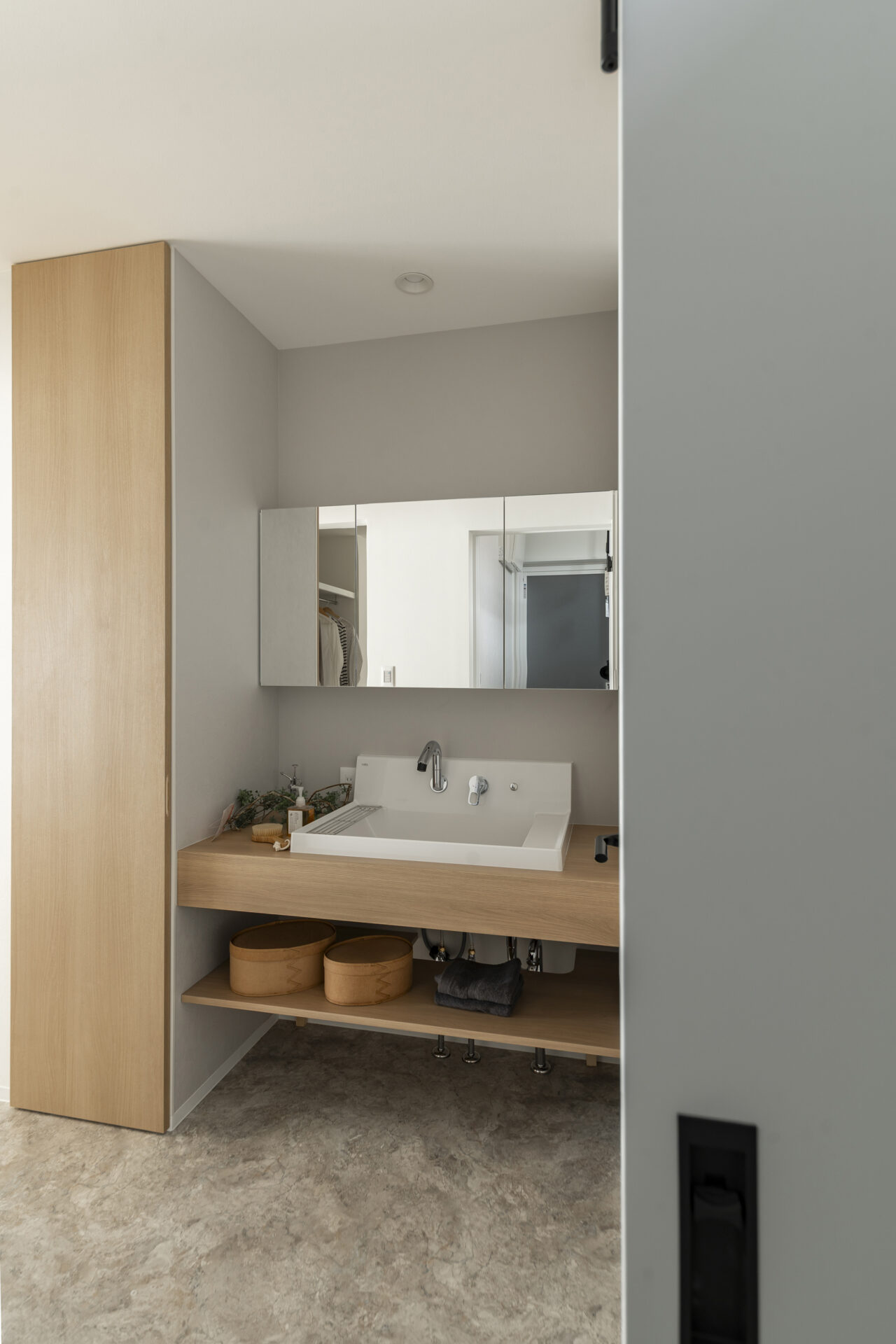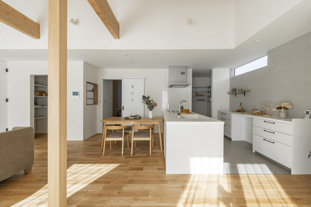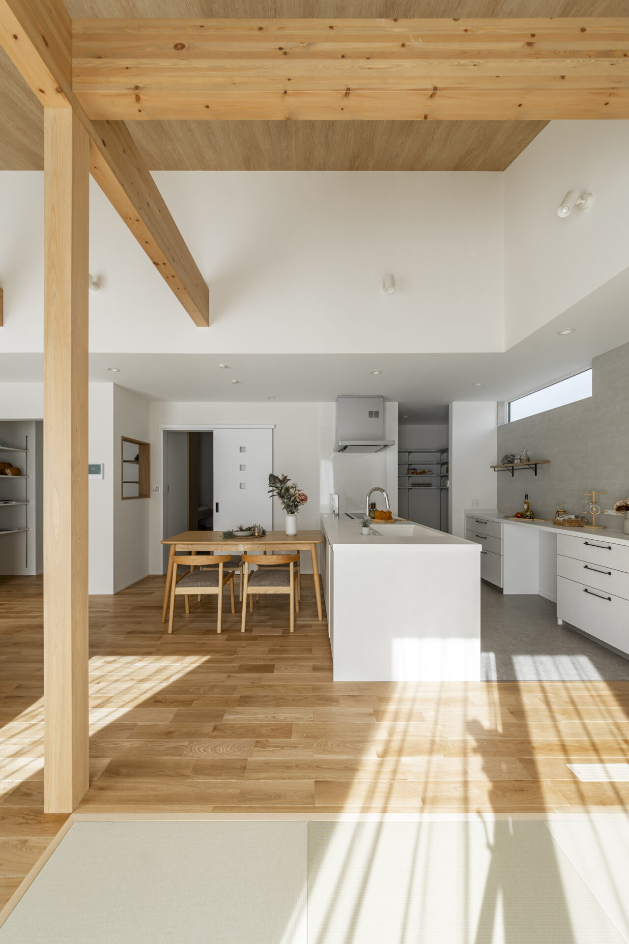 階段のないフラットな構造を活かし、家族のコミュニケーションと家事のしやすさを徹底的に追求しました。