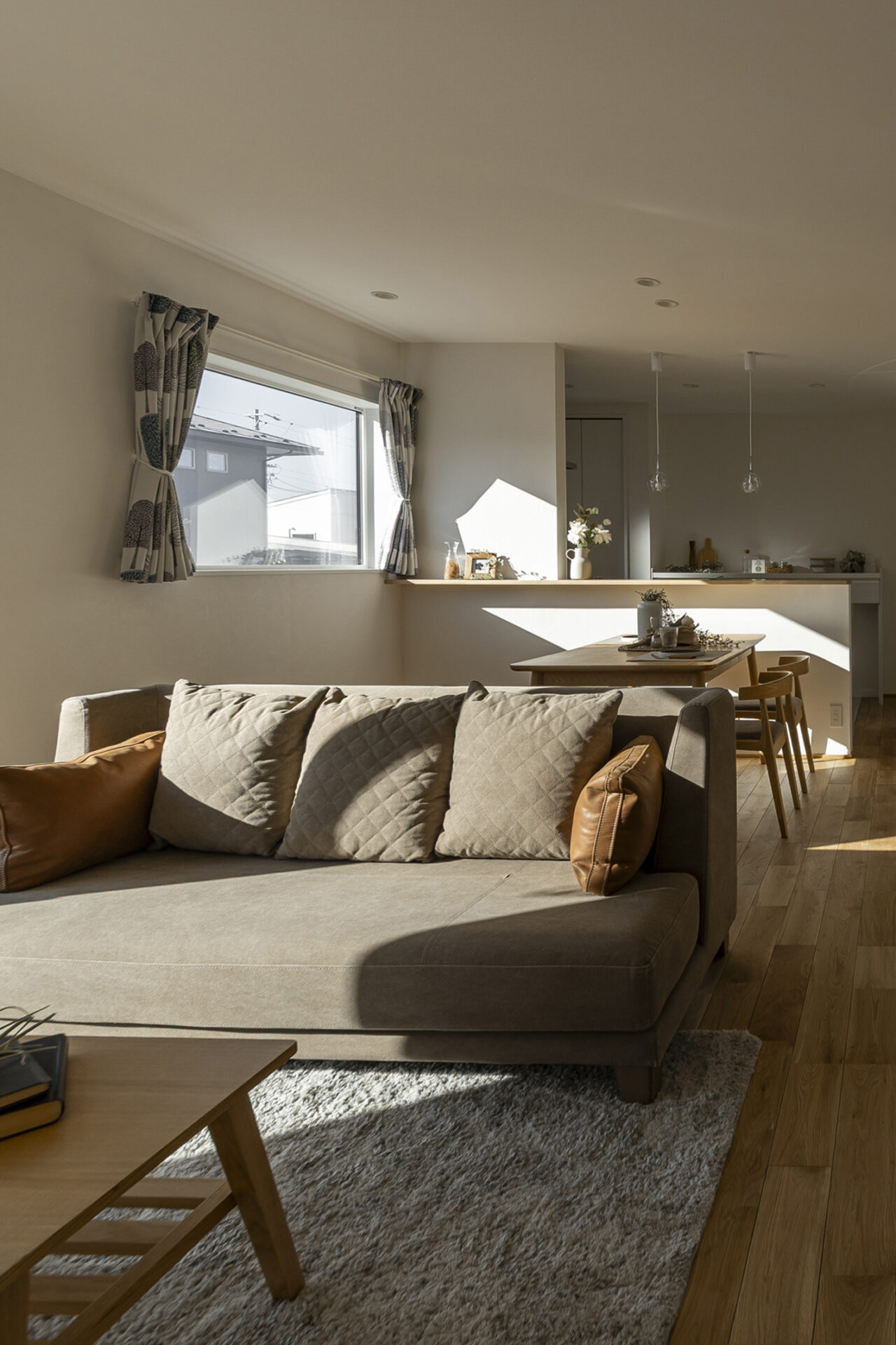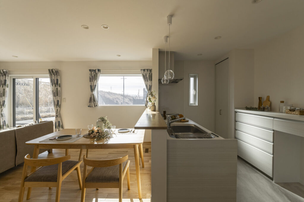 窓の外に広がる佐久の風景をインテリアの一部として取り込み、2人家族にちょうどいい、贅沢な時間が流れる住まいです 。
