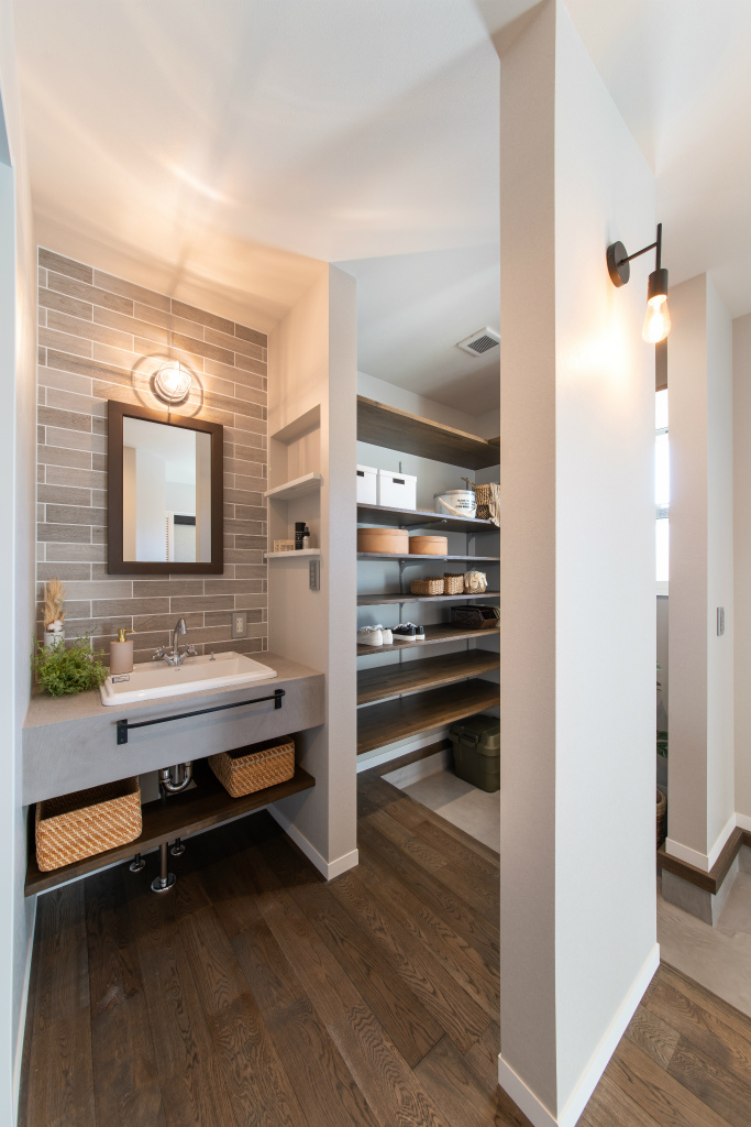 玄関ホールに、オリジナル洗面台があるので、帰宅後すぐに手洗いが可能!